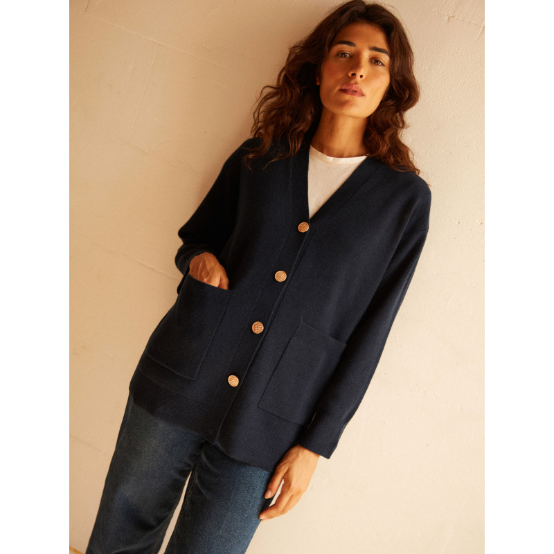 Knitted in 100% 2-ply cashmere, our Denise cardigan charms with its long and elegant silhouette. Crafted in Milano stitch, it offers a soft yet structured drape, perfect for gently enveloping the figure. Its patch pockets and discreet button placket make it as practical as it is refined.
