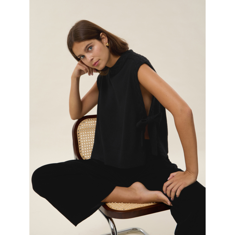 Discover the sleeveless Anna sweater, crafted in 100% 2-ply cashmere, combining softness and lightness. Its clean, straight cut, enhanced by delicate side slits, offers a fluid silhouette and optimal comfort.