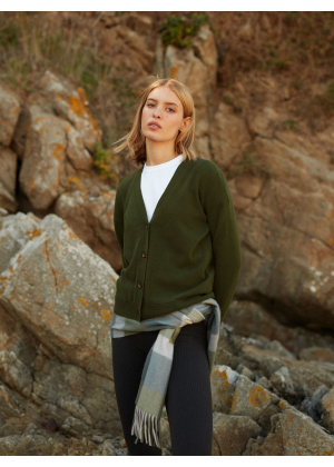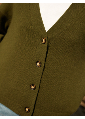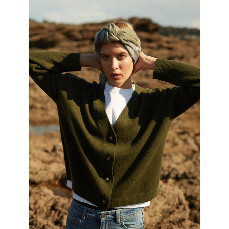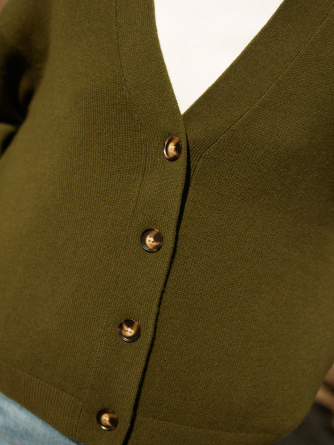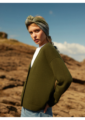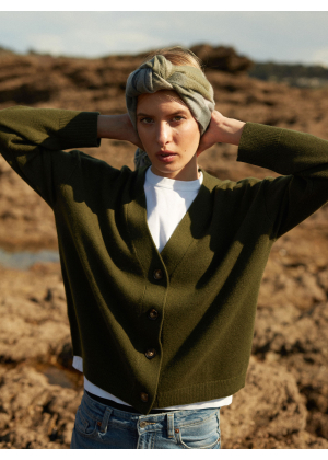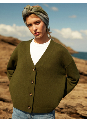 Here is Marta, our cardigan knitted in a 4-ply 100% cashmere stitch, a must-have for the feminine wardrobe. Featuring a flattering V-neck and a loose fit, it will elegantly warm up your outfit.
