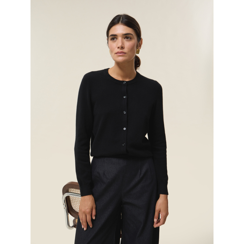 Discover our Buul cardigan, crafted from 100% cashmere, an essential piece for the feminine wardrobe. Made from delicate cashmere jersey and featuring a straight cut, Buul elegantly enhances any outfit.