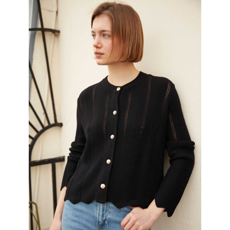 Meet Sheila, our two-ply knitted cardigan, designed to bring freshness and femininity to your wardrobe.