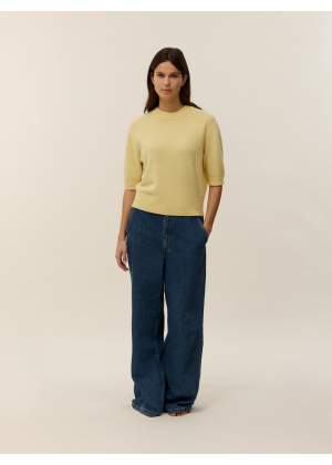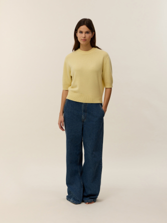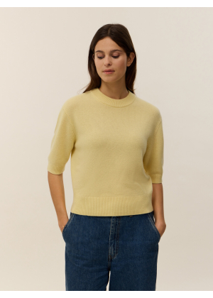 Knitted in 100% 4-ply cashmere, our Jeanne short-sleeve sweater is a key piece, combining modernity and elegance in the women’s wardrobe. Its straight cut and soft ribbed knit at the collar, sleeves, and hem give it a polished and comfortable look, perfect for transitional seasons.