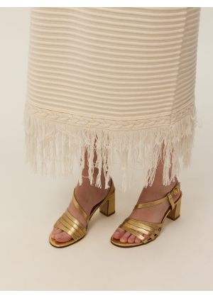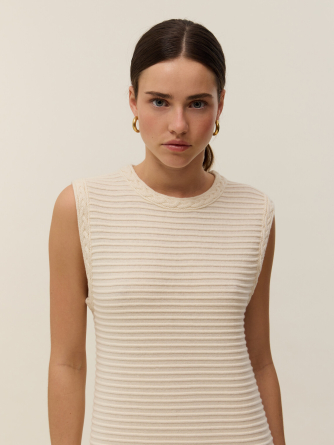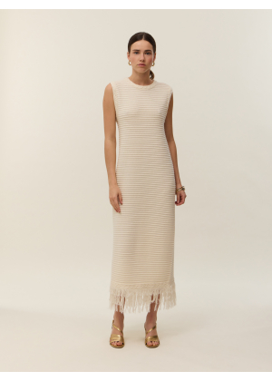 Its ribbed knit adds character to the silhouette, while the fringed hem combines originality and elegance.
