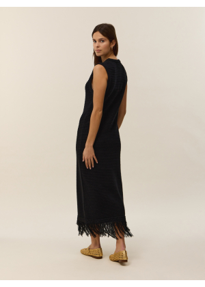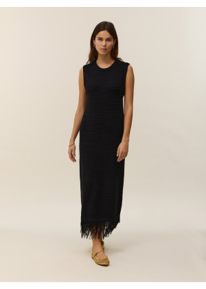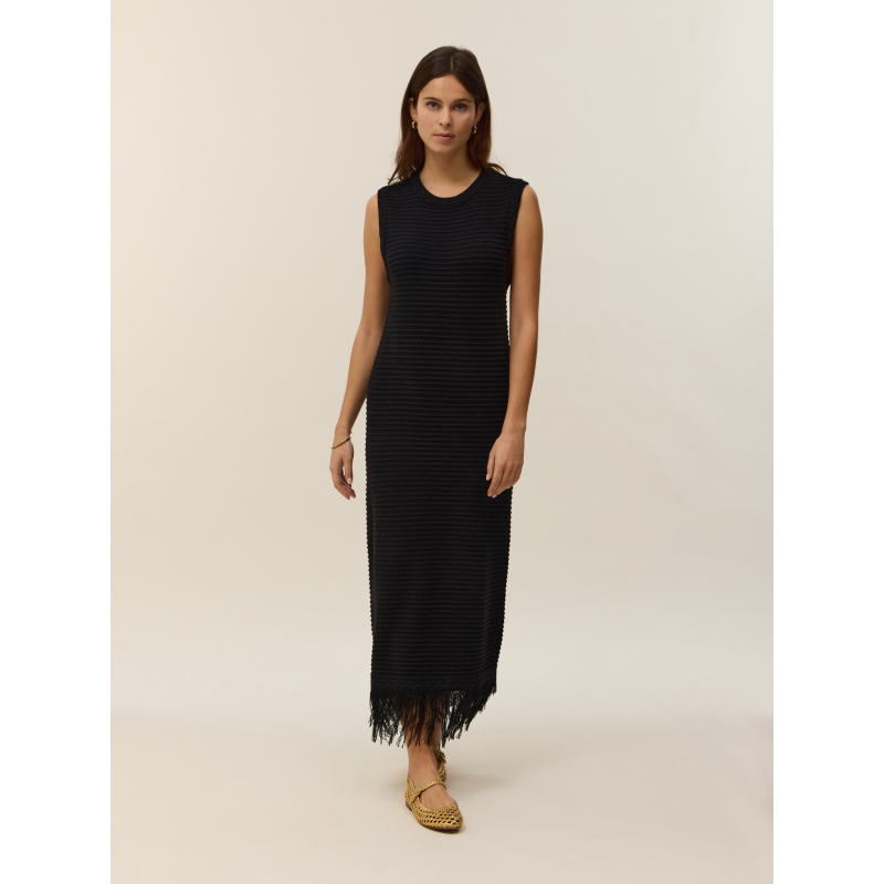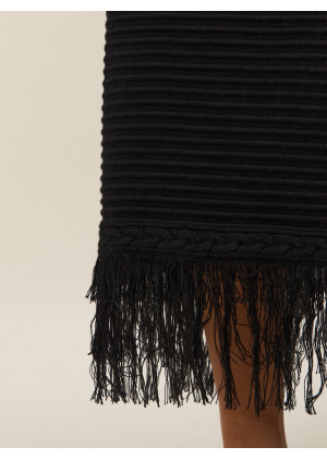 Its ribbed knit adds character to the silhouette, while the fringed hem combines originality and elegance.