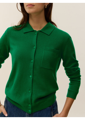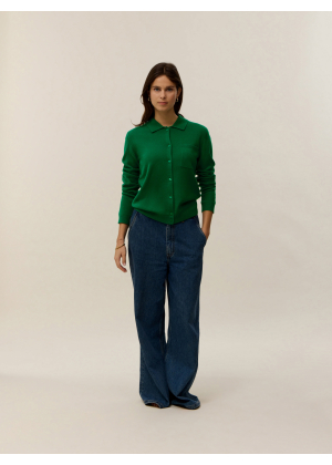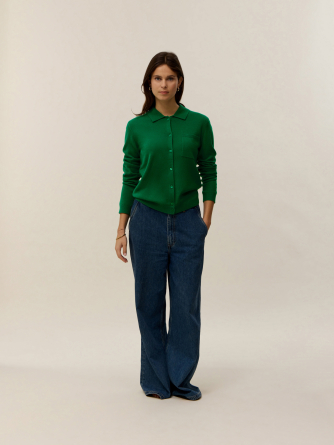Here is Amara, our cardigan shirt knitted in 100% cashmere which offers both a chic and trendy look. Its shirt collar gives it a sophisticated elegance, while its mother-of-pearl buttons add a delicate finish.