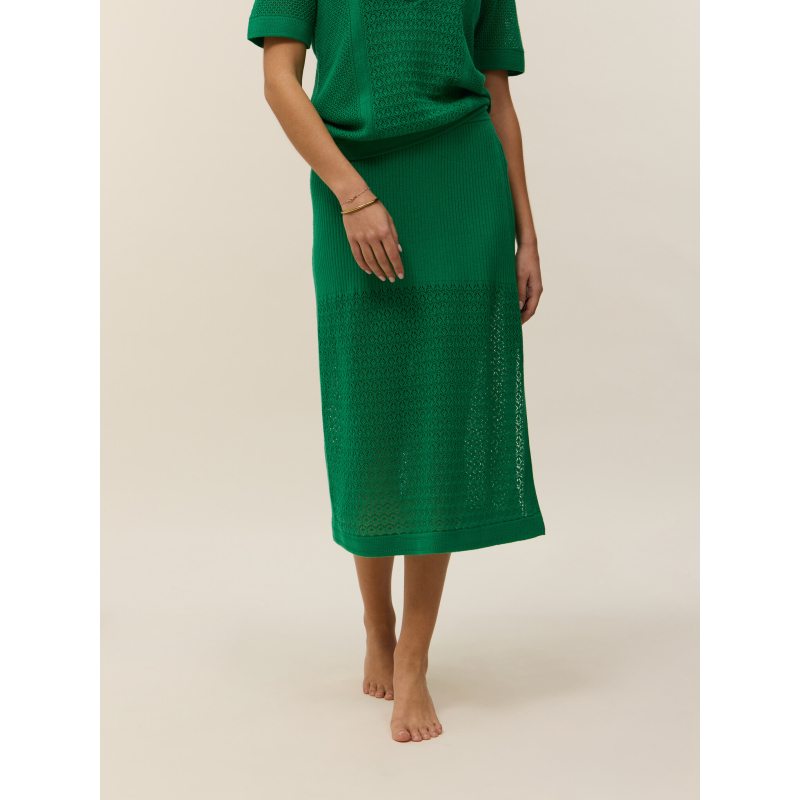Here is Isor, our cotton-cashmere midi skirt, which combines fluidity and elegance with a touch of modernity. Its subtle play of transparency, created by a shorter jersey lining, adds an airy lightness to every movement, while maintaining the necessary comfort and opacity.