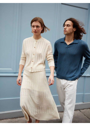 Introducing the Coquillage skirt, our cotton cashmere midi skirt that combines fluidity and elegance with a modern touch. Its subtle play on transparency brings lightness to every movement while ensuring comfort and coverage.