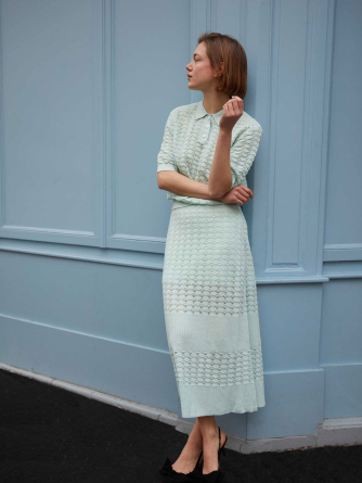Introducing the Coquillage skirt, our cotton cashmere midi skirt that combines fluidity and elegance with a modern touch. Its subtle play on transparency brings lightness to every movement while ensuring comfort and coverage.