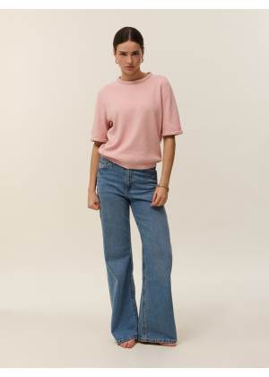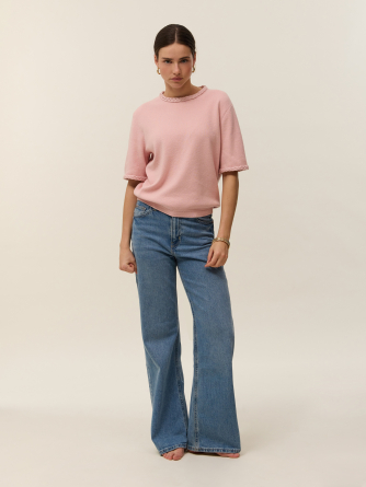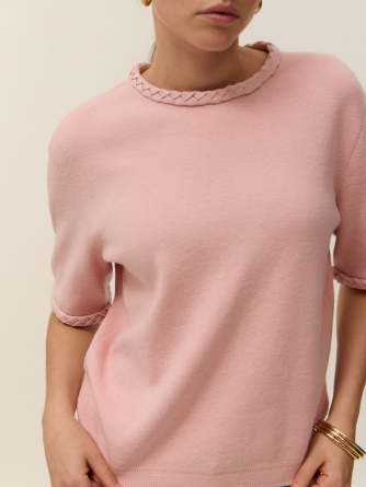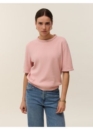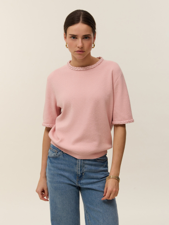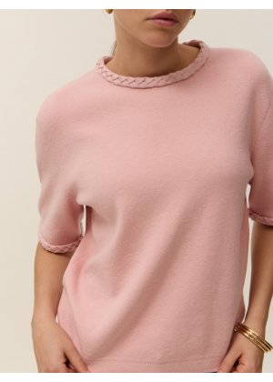 Meet Ysé, our short-sleeve top in two-ply cotton cashmere knit, designed to combine elegance and style. Its oversized cut and Milano knit create a structured, refined silhouette, perfect for everyday wear. Braided details at the neckline and sleeves add subtle texture to its minimalist, modern design.